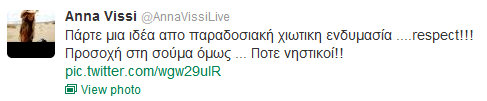 Η μοναδική Άννα Βίσση στο πλαίσιο της επιτυχημένης περιοδείας της, βρίσκεται στην Χίο για την απόψινή της συναυλία.Εκεί κάτι την εντυπωσίασε και ανέβασε μια φωτογραφία στο twitter της…
