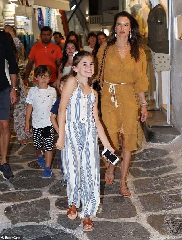 Ο φωτογραφικός φακός απαθανάτισε την Αλεσάντρα Αμπρόσιο μαζί με την κόρη της και τον γιο της να κάνουν τις βόλτες τους στα σοκάκια της Μυκόνου.
