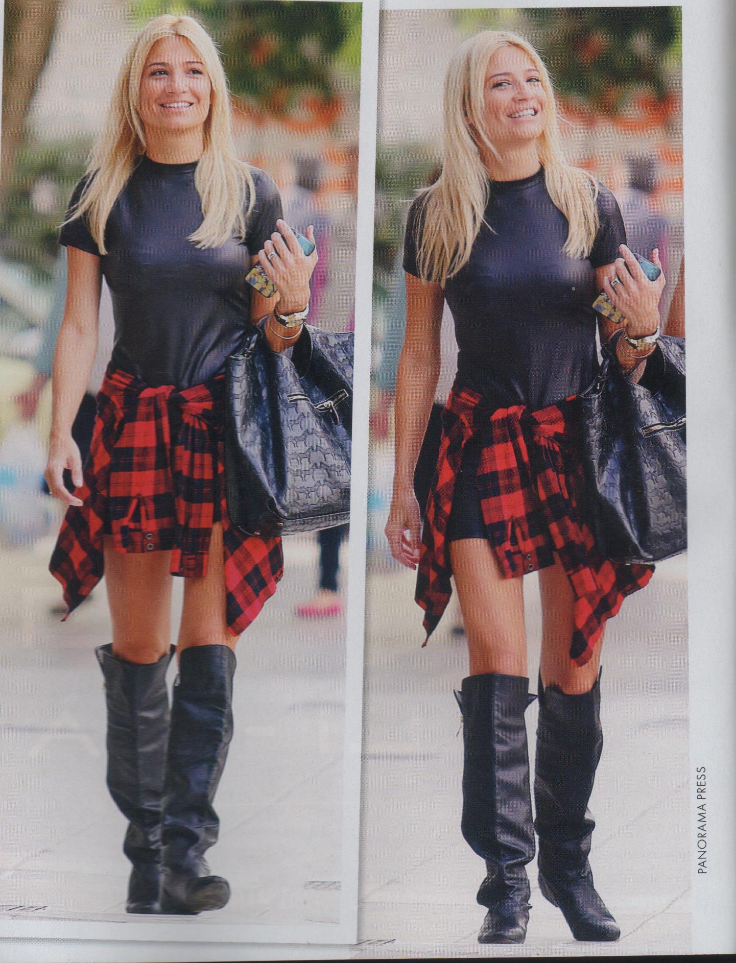 Η Φαίη Σκορδά έκανε μία βόλτα στην Κηφισιά φορώντας δερμάτινες μπότες μέχρι το γόνατο και κοντό μαύρο φόρεμα.