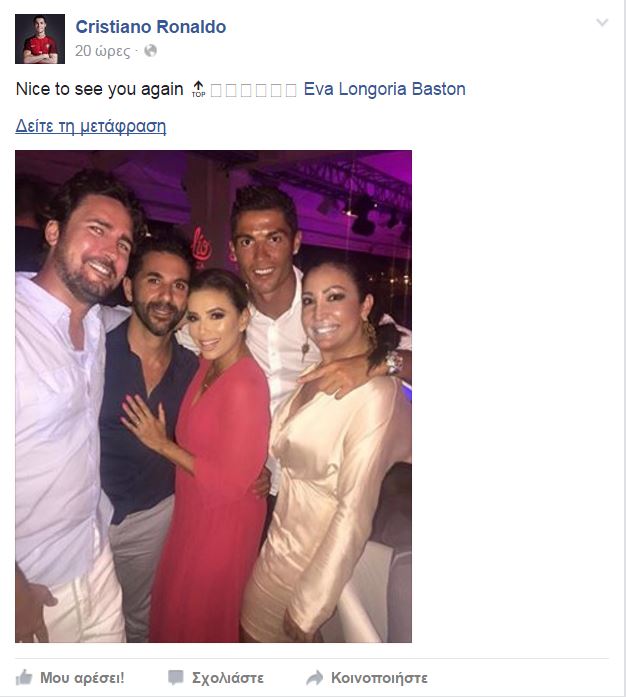Ο Ρονάλντο ιδιαίτερα χαρούμενος για αυτή τη συνάντηση, έγραψε στο Facebook: «Χαίρομαι που σε συνάντησα Εύα Λονγκόρια.