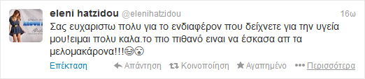 Η Ελένη Χατζίδου έκανε την πρώτη της δήλωση μετά από τη λιποθυμία της στο νυχτερινό κέντρο! Έγραψε στο twitter: