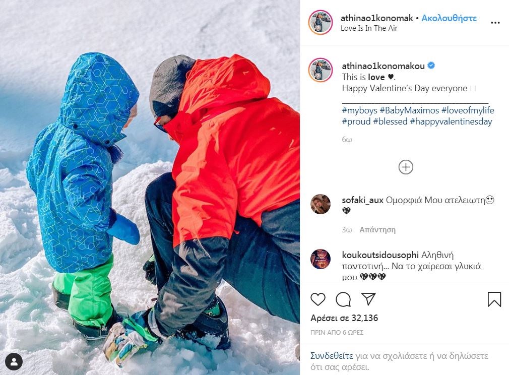 Η Αθηνά Οικονομάκου συμπλήρωσε την ανάρτησή της με αυτά τα hashtags #myboys #BabyMaximos #loveofmylife #proud #blessed #happyvalentinesday