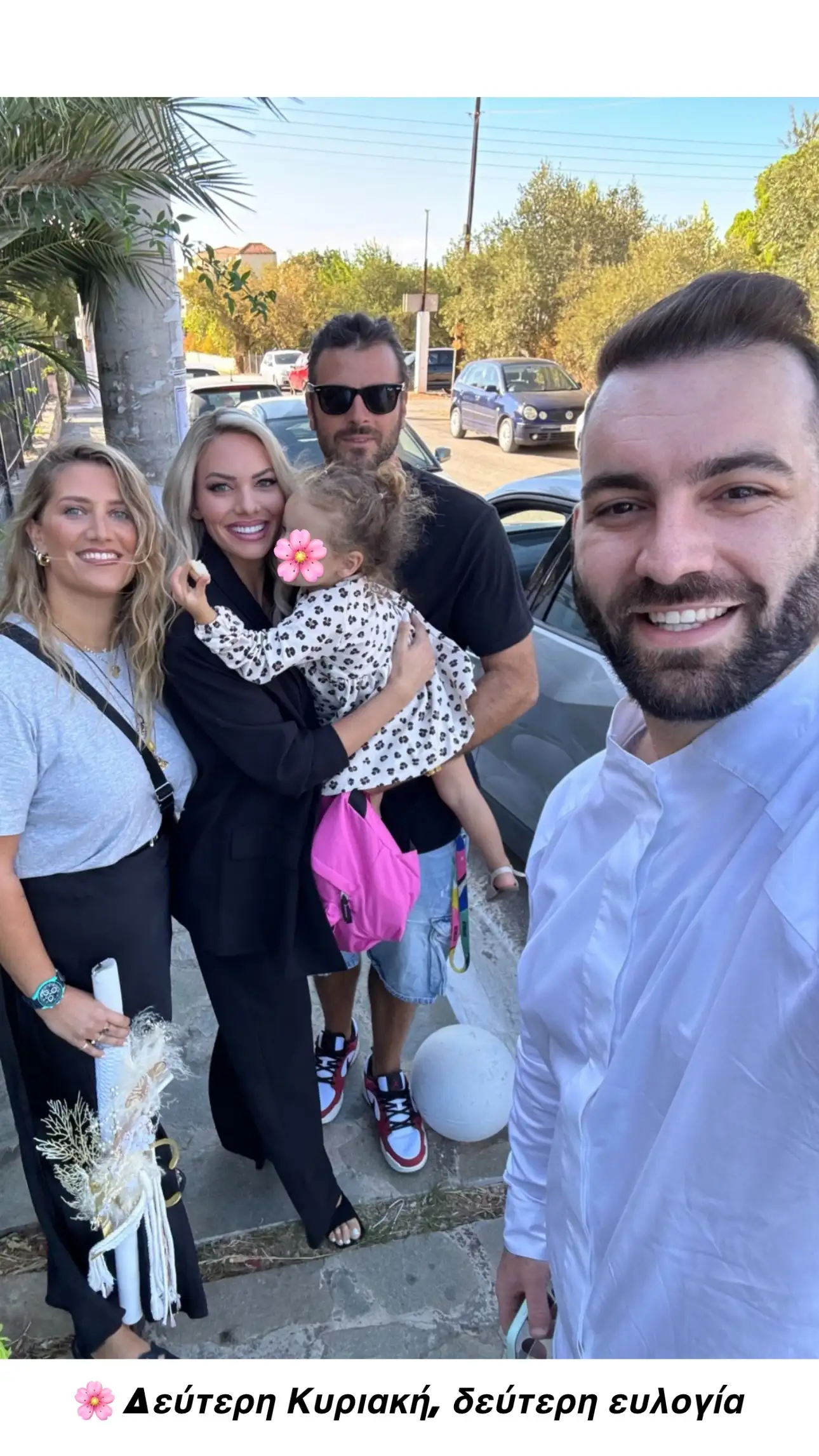 Η Ιωάννα Μαλέσκου, αν και είχε επαγγελματικές υποχρεώσεις αργότερα μέσα στη μέρα, δεν θα μπορούσε να απουσιάζει από αυτή την ξεχωριστή οικογενειακή στιγμή. Μάλιστα, με μια λιτή αλλά συγκινητική ανάρτηση, απαθανάτισε το στιγμιότυπο έξω από την εκκλησία, στέλνοντας και το δικό της μήνυμα πίστης και αγάπης για την οικογένειά της.