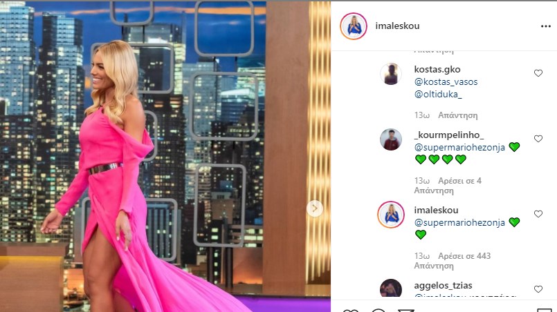 Λίγο πριν την έναρξη της εκπομπής, η Ιωάννα Μαλέσκου έκανε μια ανάρτηση στο instagram στην οποία μάλιστα τάγκαρε τον αθλητή. “Καλεσμένη απόψε στο The2NightShow με τον αγαπημένο μου @grigorisarnaoutoglou.official μιλήσαμε για .. όλα! Special guest @supermariohezonja ” έγραψε. Ο Μάριο Χεζόνια φυσικά δεν έχασε ευκαιρία και σχολίασε με μια πράσινη καρδούλα. Τα likes και τα σχόλια στη συγκεκριμένη καρδούλα έπεσαν “βροχή. Η παρουσιάστρια τον ευχαρίστησε απαντώντας με δύο πράσινες καρδούλες.