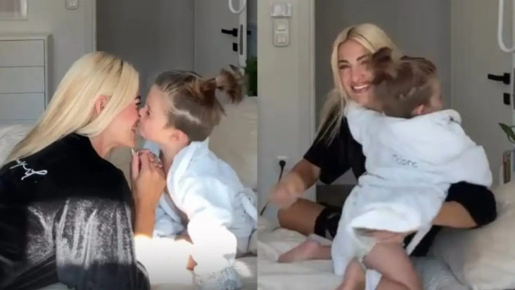 Παράλληλα, μέσα από νέο βίντεο που ανάρτησε, μοιράστηκε μια τρυφερή στιγμή με τον γιο της, δείχνοντας τον μικρό Πάρη να την αγκαλιάζει σφιχτά στο κρεβάτι.