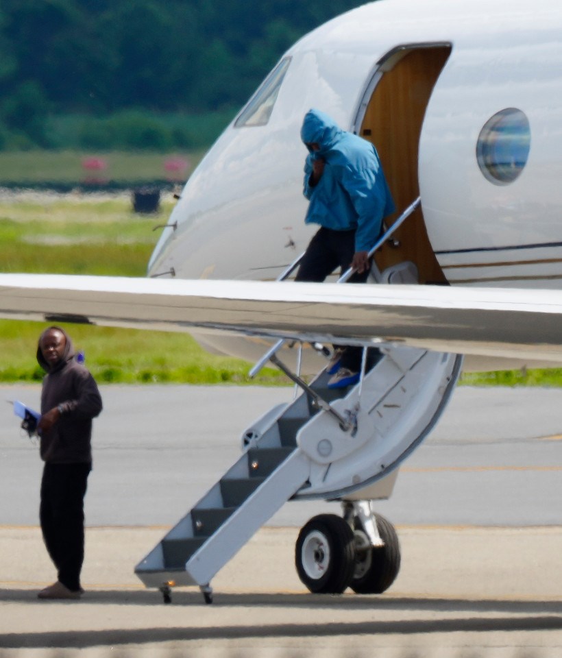 Ο ράπερ προσπαθούσε να κρύψει το πρόσωπό του, προφανώς φοβούμενος ότι θα υπήρχαν παπαράτσι και στο αεροδρόμιο.