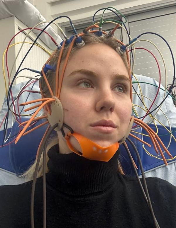 Σε μία από αυτές φαίνεται ξαπλωμένη σε κρεβάτι φορώντας ένα κολάρο αυχένα, ενώ σε μια άλλη υποβάλλεται σε ηλεκτροεγκεφαλογράφημα.