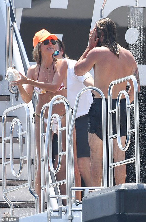 Ως συνήθως το 48χρονο μοντέλο και παρουσιάστρια επέλεξε αποκαλυπτικό μπικίνι που αναδεικνύει την άψογη σιλουέτα της, αφήνοντας τους ακολούθους της να παραληρούν. Παράλληλα, οι φωτογραφίες των παπαράτσι την καταγράφουν να απολαμβάνει τα καυτά φιλιά του συζύγου της, με τον οποίο είναι ιδιαίτερα περιποιητική απλώνοντας αντηλιακό στην πλάτη. Στο σκάφος βρίσκονται η 17χρονη κόρη της Λένι που ακολουθεί τα βήματά της στο μόντελινγκ όπως και οι δύο γιοι της 15 και 14 χρονών αντίστοιχα. Μόνο ο μικρότερος γιος της, ο 11χρονος Λου, δεν ήταν μαζί της.