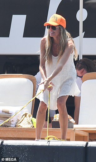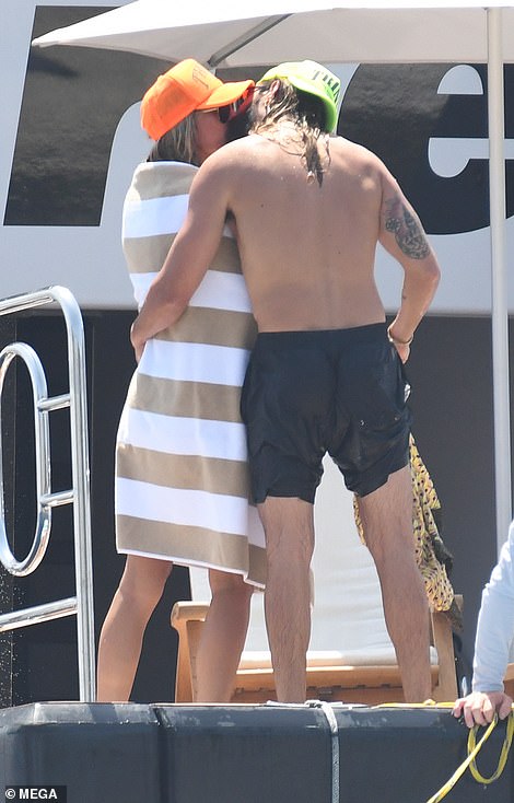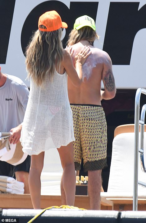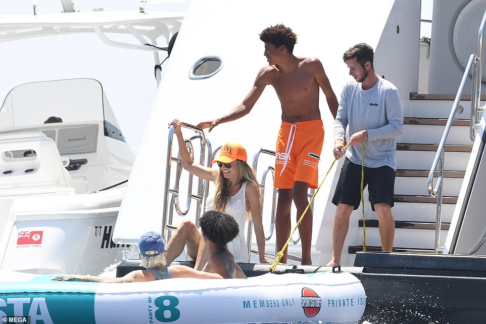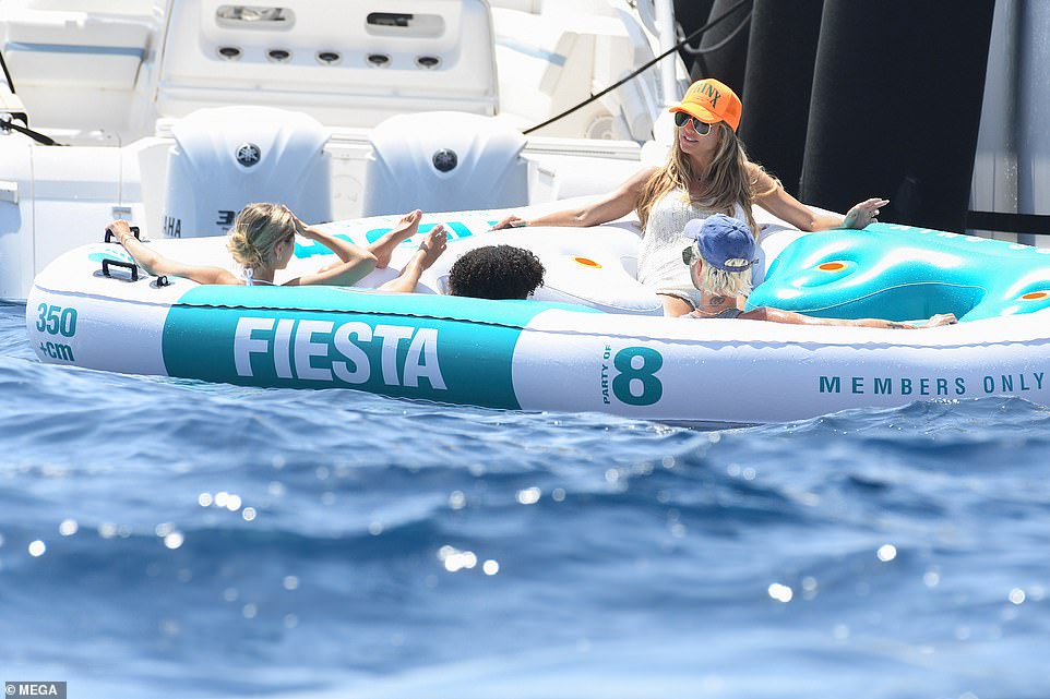 Ως συνήθως το 48χρονο μοντέλο και παρουσιάστρια επέλεξε αποκαλυπτικό μπικίνι που αναδεικνύει την άψογη σιλουέτα της, αφήνοντας τους ακολούθους της να παραληρούν. Παράλληλα, οι φωτογραφίες των παπαράτσι την καταγράφουν να απολαμβάνει τα καυτά φιλιά του συζύγου της, με τον οποίο είναι ιδιαίτερα περιποιητική απλώνοντας αντηλιακό στην πλάτη. Στο σκάφος βρίσκονται η 17χρονη κόρη της Λένι που ακολουθεί τα βήματά της στο μόντελινγκ όπως και οι δύο γιοι της 15 και 14 χρονών αντίστοιχα. Μόνο ο μικρότερος γιος της, ο 11χρονος Λου, δεν ήταν μαζί της.