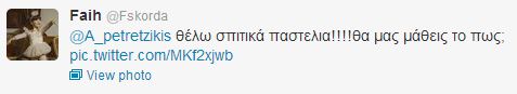 Είναι γνωστό ότι η Φαίη Σκορδά μαγειρεύει και μάλιστα δέχεται και τις συμβουλές του ειδικού Άκη Πετρετζίκη. Σήμερα, μέσω twitter του ζήτησε να της μάθει να φτιάχνει σπιτικό παστέλι…