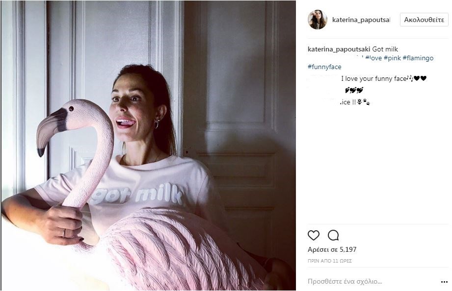 Η νέα μόδα που έχει ξετρελάνει τους celebrities -και όχι μόνο- φέτος το καλοκαίρι, είναι αδιαμφισβήτητα τα πασίγνωστα πλέον… ροζ φλαμίνγκο!Επώνυμες και μη κυρίες φωτογραφίζονται με τα φουσκωτά φλαμίνγκο, σε παραλίες αλλά και πισίνες, προκαλώντας πανικό στα social media.Από αυτή τη νέα «τρέλα» δεν ξέφυγε ούτε η Κατερίνα Παπουτσάκη, η οποία πόζαρε με το ροζ φλαμίνγκο, όχι όμως σε κάποια παραλία, αλλά στο σπίτι της.Η ηθοποιός ανέβασε μία φωτογραφία στον προσωπικό της λογαριασμό στο Instagram, στην οποία κρατά ένα φλαμίνγκο και μάλιστα φορά μία ασορτί ροζ μπλούζα!Δείτε την ανάρτηση: