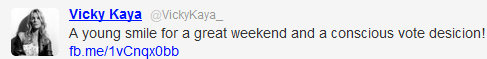 Η Βίκυ μας χαρίζει ένα – πολύ- νεανικό της χαμόγελο για ένα υπέροχο Σαββατοκύριακο και μας παροτρύνει να επιλέξουμε με συνείδηση τι θα ψηφίσουμε! Το νου σας…