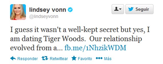 Λένε ότι όπου υπάρχει καπνός υπάρχει και φωτιά. Τον τελευταίο καιρό είχαν οργιάσει οι φήμες που ήθελαν τον σούπερ σταρ του γκολφ Τάιγκερ Γουντς να είναι ζευγάρι με την σκιέρ Λίντσεϊ Βον. Οι δύο αθλητές αποφάσισαν να τις επιβεβαιώσουν με την Βον να το κάνει αρχικά μέσω του λογαριασμού της στο Twitter. Tόσο εκείνη, όσο και ο Γουντς δημοσίευσαν φωτογραφίες τους στο Facebook.