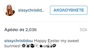 Δείτε τις ευχές που έστειλε η Σίσσυ Χρηστίδου στους φίλους της μέσω του Instagram: