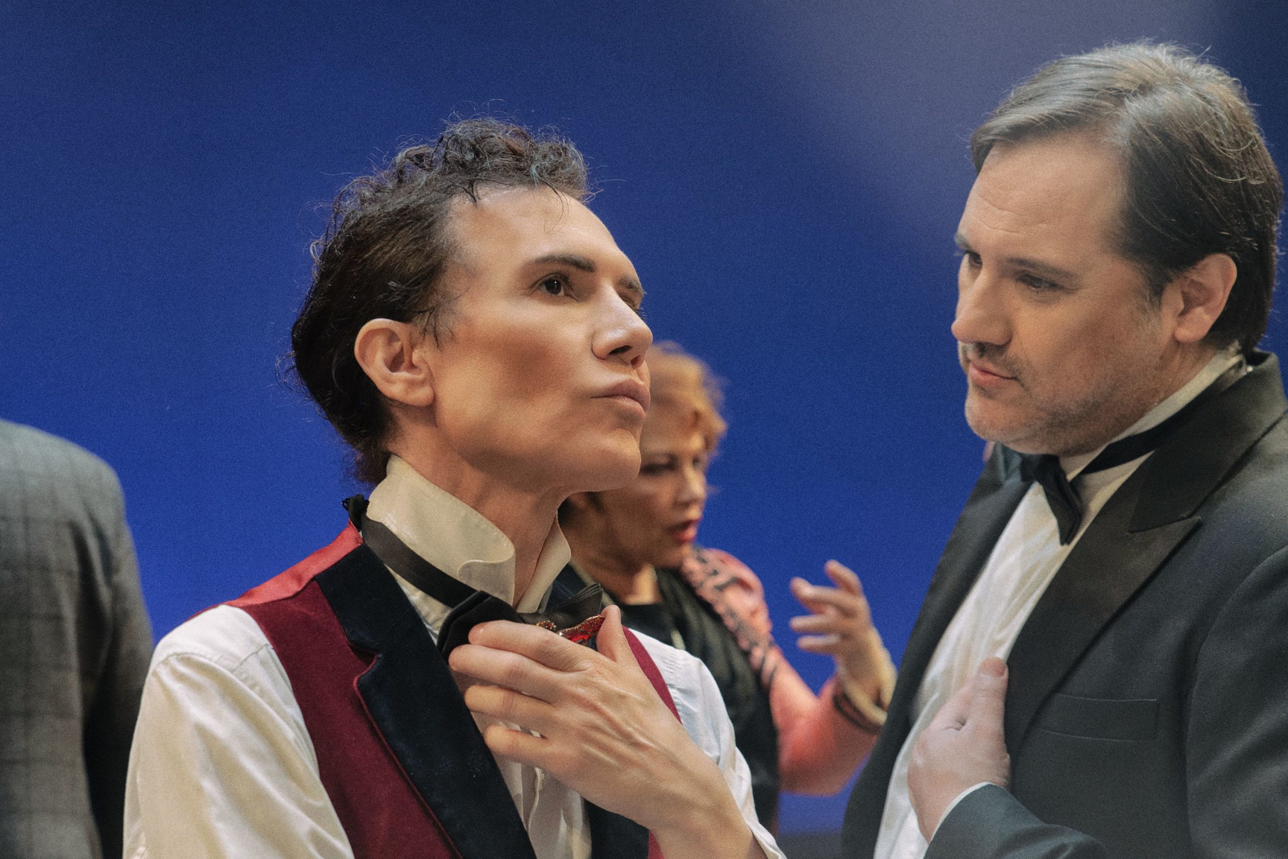 Λίλη Αδρασκέλα (Κοπέλα, Ηθοποιός Β΄, Νοσοκόμα Β΄, Μαθήτρια Α΄, Ηθοποιός Δ΄) Μαίρη Ανδρέου (Λιάνα, Δημητρώ, Μπέλα, Θεατρίνα Α΄, Ηθοποιός Α΄), Νικολέττα Βλαβιανού (Παυλίνα Δαμάσκου, Σμαρώ Μπιζάνη), Λευτέρης Δημηρόπουλος (Γιάννης Ρούμπος, Αρμάνδος Α΄, Δεξιός, Ταρζάν), Δημήτρης Διακοσάββας (Μάκης Αλεβίζος, Δημήτριος Κοτοπούλης, Σταθμάρχης, Γαστόν Α΄, Ηθοποιός, Καφετζής, Ηθοποιός Α΄), Άννα Ευθυμίου (Μαίρη Ντόλη, Ελένη Κοτοπούλη, Μαρίκα Κοτοπούλη, Καίτη, Νοσοκόμα Α΄, Θεατρίνα Β΄, Ηθοποιός Γ΄), Ζωή Ευθυμίου (Ροζαλία μικρή, Νικόλ, Μαθήτρια B΄, Κυρία Δ΄, Ηθοποιός Δ’, Κοπέλα), Παντελής Καναράκης (Ζανό), Νίκος Καπέλιος (Βύρων Κονταράτος, Μικιός Λάμπρος, Χορογράφος, Σκηνοθέτης), Αγγελική Κιντώνη (Νίκη Μπέμπη), Θάνος Κοντογιώργης (Μαντάς), Άννα Κυριακίδου (Σωσώ Κανδύλη, Κυρία Βούλα), Χριστίνα Κωνσταντινίδου (Ρόζα, Μαθήτρια Γ΄, Κοπέλα, Κυρία Α΄, Ηθοποιός Γ΄), Τατιάνα Μελίδου (Τζένη), Δημήτρης Μορφακίδης (Κώστας, Τεχνικός, Αρμάνδος B΄, Λογοκριτής, Αριστερός, Εαμίτης), Χριστίνα Μπακαστάθη (Κυρία Λάμπρου, Θεατρίνα Γ΄, Ηθοποιός Β΄, Κατερίνα), Κλειώ Δανάη Οθωναίου (Ροζαλία), Κώστας Σαντάς (Αντώνης Σταυρόπουλος, Ηθοποιός Κοσμογονίας), Σπύρος Σαραφιανός (Κώστας Πυργιώτης, Στέφανος Κανδύλης), Εύη Σαρμή (Πιπίτσα, Ηθοποιός Α΄, Θάλεια, Νοσοκόμα), Δημήτρης Σιακάρας (Σπύρος Δαμάσκος, Σκηνοθέτης), Θεοφανώ Τζαλαβρά (Καίτη Βίβα, Ηθοποιός Α΄, Κυρία Γ΄), Ορέστης Τζιόβας (Λάμπρος Ρινάλδης, Γιώργος Σαράντος), Θάνος Φερετζέλης (Λογιστής, Γαστόν Β΄, Αστυνόμος, Λογοκριτής, Καφετζής), Ανδριάννα Χαλκίδη (Φωφώ Ρινάλδη, Κυρία Β΄)