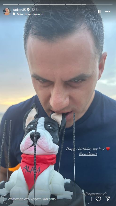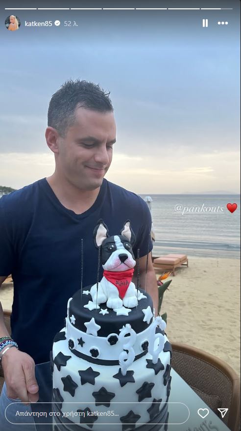 Από τη γιορτή δεν έλειπε φυσικά η Κατερίνα Καινούργιου, η οποία μοιράστηκε με τους διαδικτυακούς της φίλους ένα σύντομο βίντεο, στο οποίο εμφανίζεται να φιλά τον σύντροφό της με τρυφερότητα, αμέσως μετά το σβήσιμο της τούρτας.