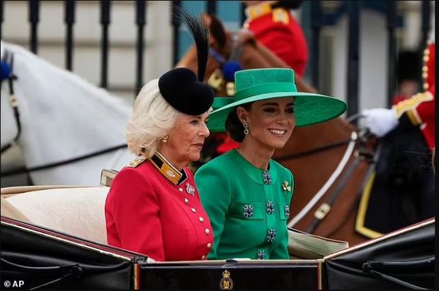 Η πριγκίπισσα της Ουαλίας, Κέιτ Μίντλετον, έλαμψε για ακόμη μία φορά. Φόρεσε ένα κομψό πράσινο φόρεμα και ασορτί καπέλο καθώς παρευρέθηκε στους εορτασμούς Trooping the Color σήμερα.
