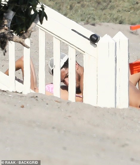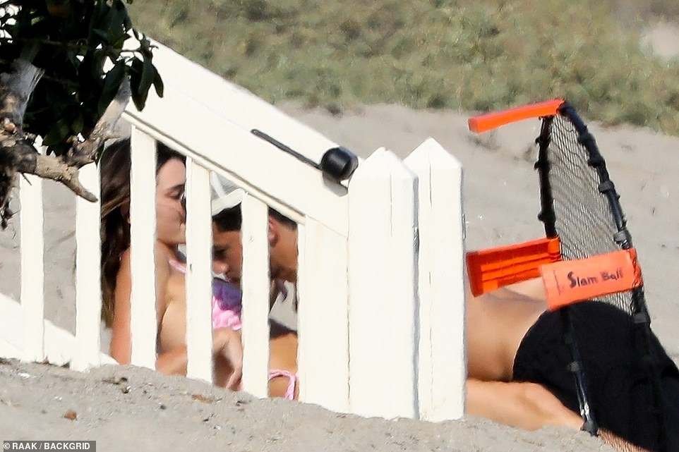 Απομακρύνθηκαν από την παρέα των φίλων τους και απέμειναν οι δυο τους ξαπλωμένοι απόμερα ανταλλάσσοντας τρυφερά φιλιά και αγκαλιές στην παραλία του Μαλιμπού. Προσπαθώντας μάλιστα να έχουν ιδιωτικότητα κρύφτηκαν πίσω από τα κάγκελα μιας σκάλας αλλά και πάλι οι φωτορεπόρτερ τους “τσάκωσαν” σε τρυφερά ενσταντανέ.