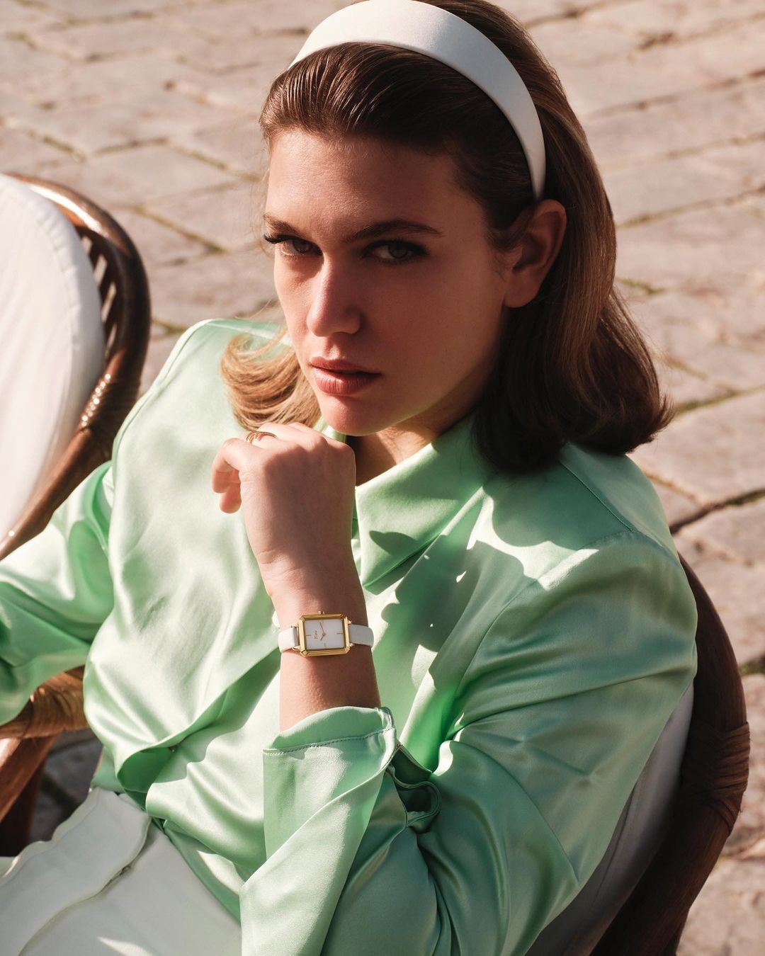 Η Κλέλια Ανδριολάτου στις φωτογραφίες που δημοσίευσε, φορά ένα παλ πράσινο σατέν πουκάμισο και λευκή στέκα στα μαλλιά, τα οποία έχουν γυρισμένες άκρες προς τα έξω, θυμίζοντας εποχή ΄60s.