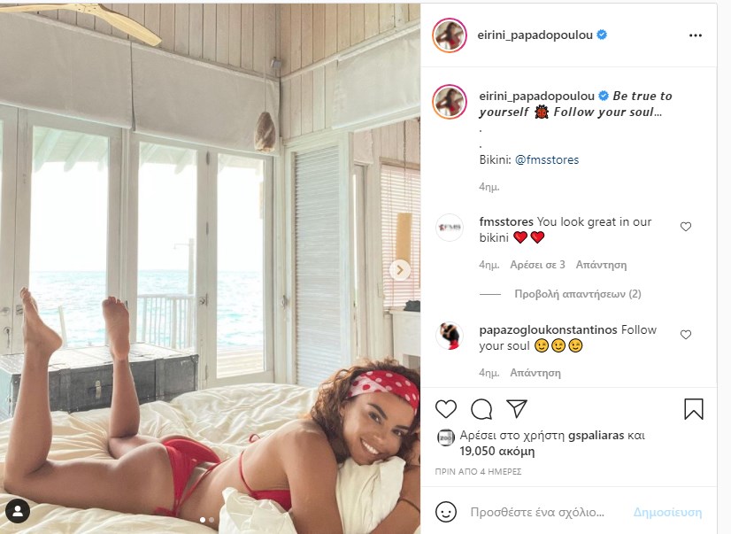 Στα ύψη ανέβασε το θερμόμετρο η Ειρήνη Παπαδοπούλου ποζάροντας μόνο με το μαγιό της. Η τραγουδίστρια απολαμβάνει ξέγνοιαστες στιγμές δίπλα στη θάλασσα.