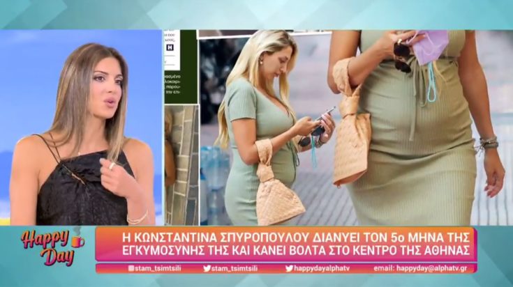 Η Κωνσταντίνα Σπυροπούλου διανύει τον 5ο μήνα της εγκυμοσύνης της και το Hello δημοσίευσε τις πρώτες φωτογραφίες που διαγράφεται η κοιλίτσα της. Μέχρι στιγμής η παρουσιάστρια δεν έχει παραδεχτεί ότι είναι έγκυος, ενώ φροντίζει σε όλες τις φωτογραφίες να καλύπτει την περιοχή της κοιλιάς.