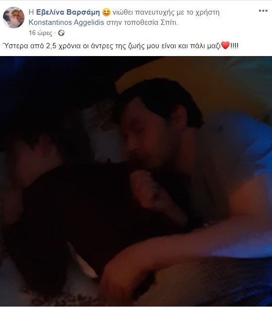 «Ύστερα από 2,5 χρόνια οι άνδρες της ζωής μου είναι και πάλι μαζί», έγραψε χαρακτηριστικά η Εβελίνα Βαρσάμη, δηλώνοντας πανευτυχής για το γεγονός.