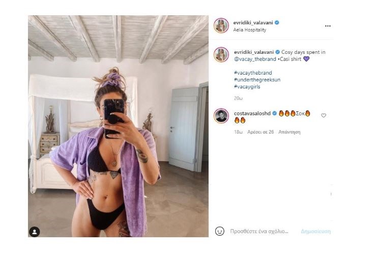 Συγκεκριμένα ο Κωνσταντίνος Βασάλος έγραψε : “Σοκ” και έβαλε πολλά emojies με φωτιές, δείχνοντας δημόσια τον θαυμασμό του για την σύντροφό του.