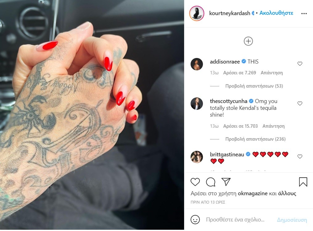 Με μια φωτογραφία που κρατά το χέρι του η Κόρτνεϊ Καρντάσιαν δημοσιοποίησε και επιβεβαίωσε τη σχέση της με τον Τράβις Μπάρκερ.