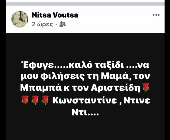 Με μια συγκινητική ανάρτηση γνωστοποίησε πριν από λίγες ώρες τον θάνατο του αγαπημένου ηθοποιού Κώστα Βουτσά, η αδελφή του, Νίτσα.