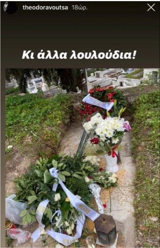 Η Θεοδώρα Βουτσά ακόμα δεν μπορεί να πιστέψει ότι ο πατέρας της δεν είναι πια κοντά τους. Μέσω InstaStories στο Instagram ανέβασε φωτογραφίες, που απεικονίζουν τα λουλούδια που υπάρχουν στον τάφο του πατέρα της. Όχι μόνο αυτά που έχει αφήσει η οικογένεια αλλά και απλός κόσμος που υπεραγαπούσε τον σπουδαίο ηθοποιό.