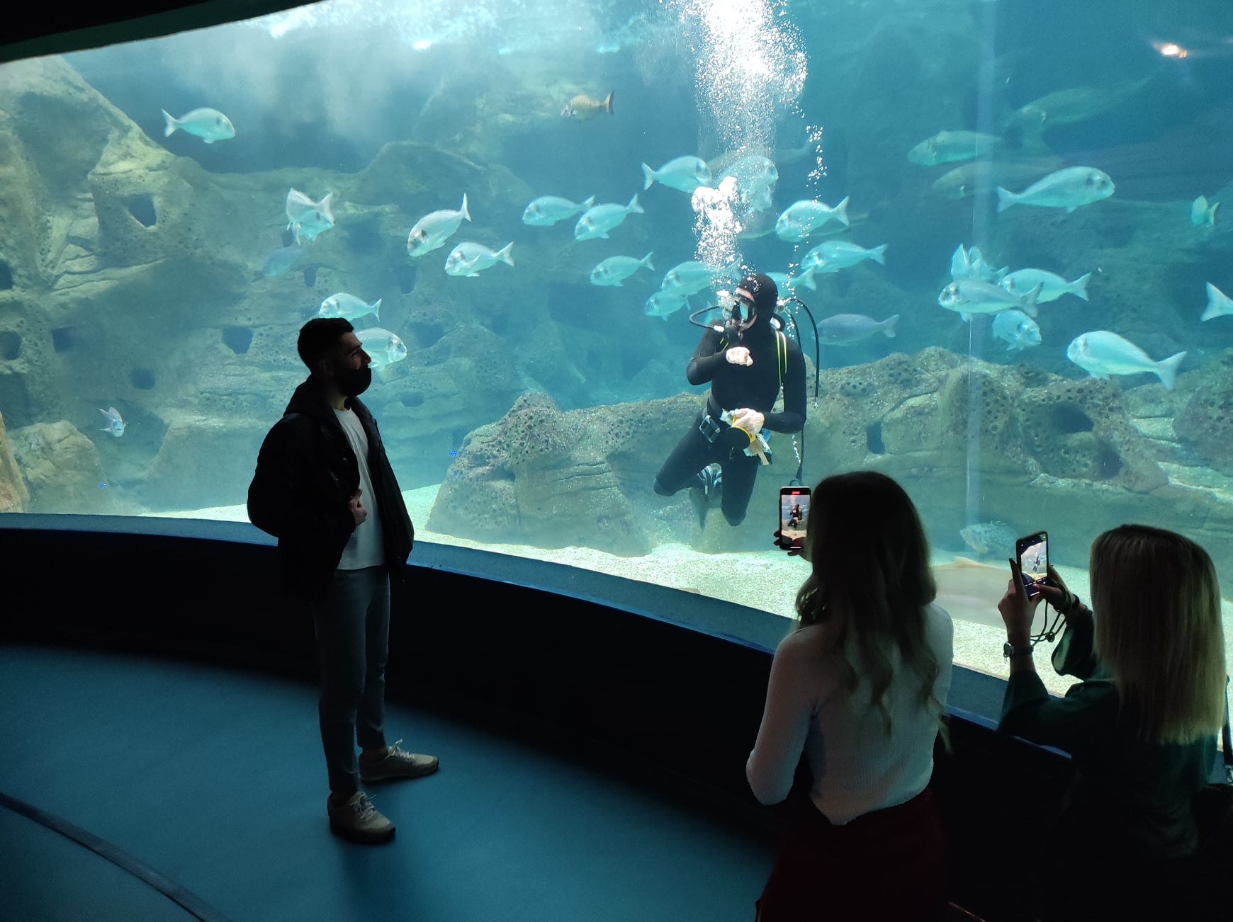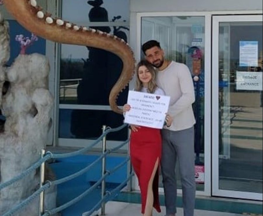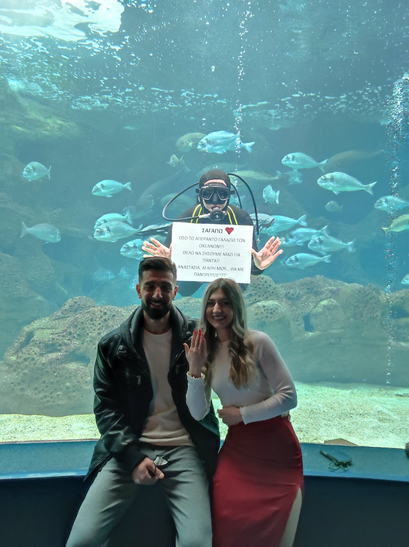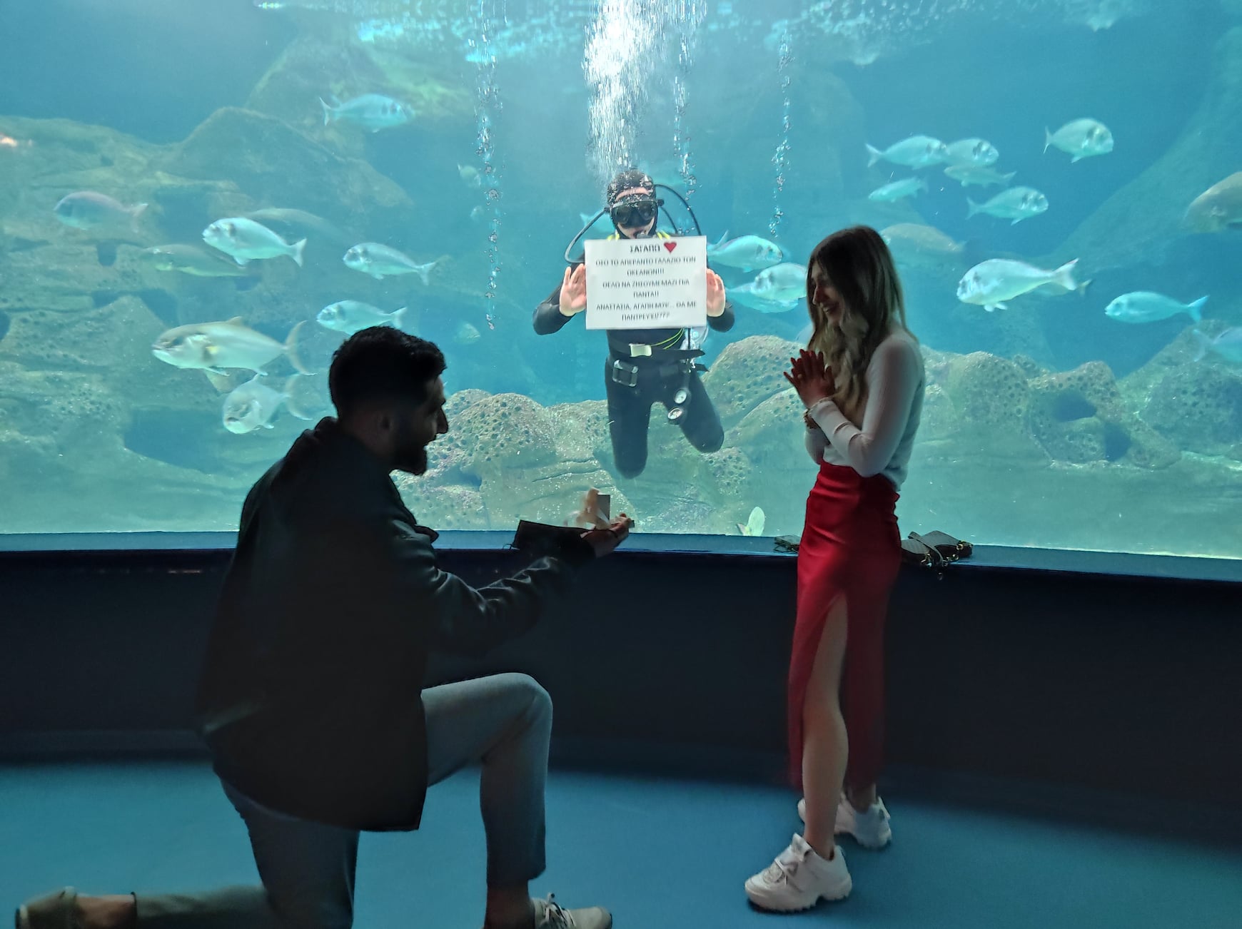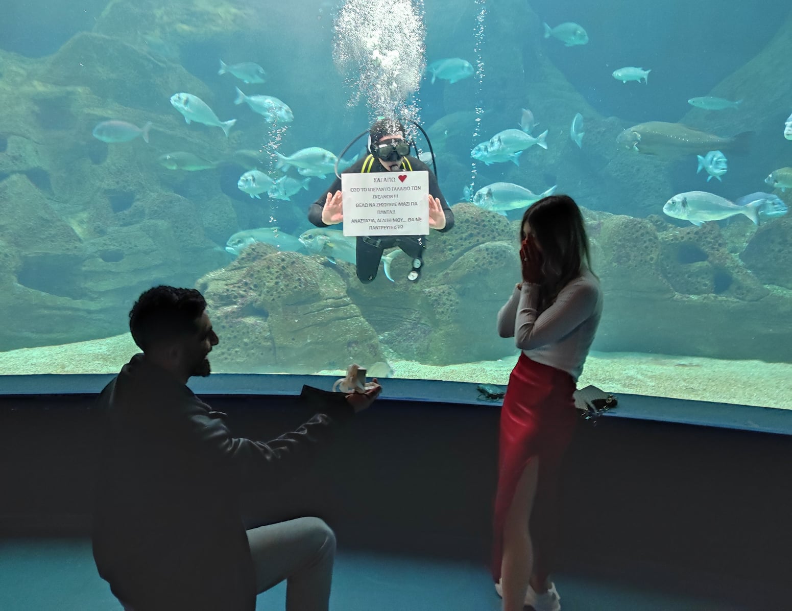 Πήγε βόλτα την αγαπημένη του Αναστασία, στο ενυδρείο Cretaquarium, και εκεί της έγινε η πρόταση γάμου μέσα από το νερό.
