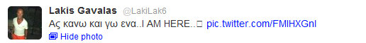 Ο Λάκης Γαβαλάς ζήλεψε τη δόξα εκείνων που δηλώνουν στο twitter “είμαι εδώ” και ποστάρουν φωτογραφίες και αποφάσισε να τους…αντιγράψει!