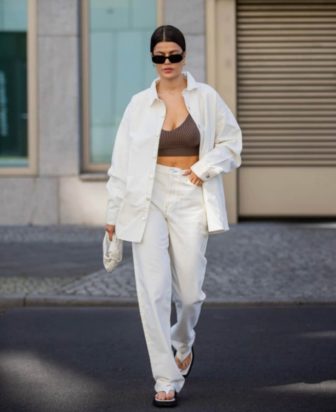 Απλά και καθαρά: flat και loose, με ένα κλασικό white φανελάκι με τιράντα και καλοκαιρινά σανδάλια. Αφήστε για λίγο τα έντονα χρώματα και τις υπερβολές και επενδύστε στη δύναμη του λευκού που κάνει κάθε outfit τόσο τέλειο, ακόμα κι αν βασίζεται σε basic κομμάτια.