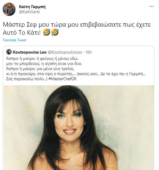 Η τραγουδίστρια Καίτη Γαρμπή του απάντησε: ” Μάστερ Σεφ μου τώρα μου επιβεβαιώσατε πως έχετε Αυτό Το Κάτι!”