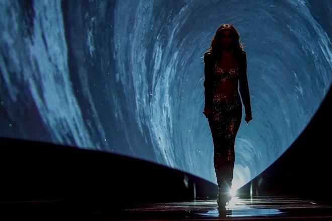 Φορώντας ένα χρυσό κορμάκι, βγαίνει από ένα τούνελ με μπλε φως, το οποίο στη συνέχεια γίνεται κόκκινο. Ακολουθούν 4 χορεύτριες που τη συνοδεύουν, ενώ από πίσω τους πετάγονται φωτιές.