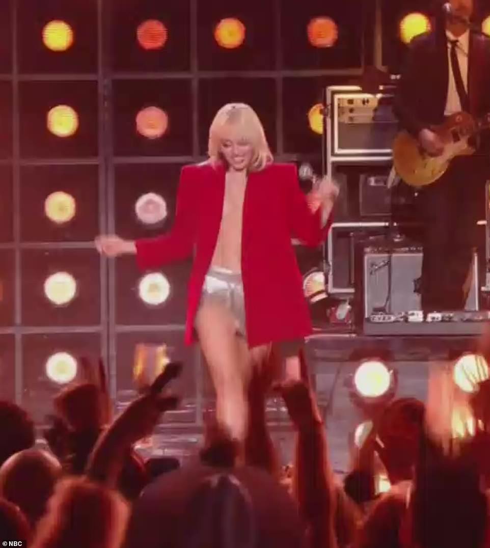 Η Μάιλι Σάιρους εμφανίστηκε με ένα αποκαλυπτικό σύνολο. Λίγα λεπτά μετά τα μεσάνυχτα, η τραγουδούσε την επιτυχία της “Party In The USA” όταν κόπηκαν οι ασημένιες τιράντες που κρατούσαν το μικροσκοπικό της τοπ στη θέση και το ύφασμα άρχισε να κυλά.