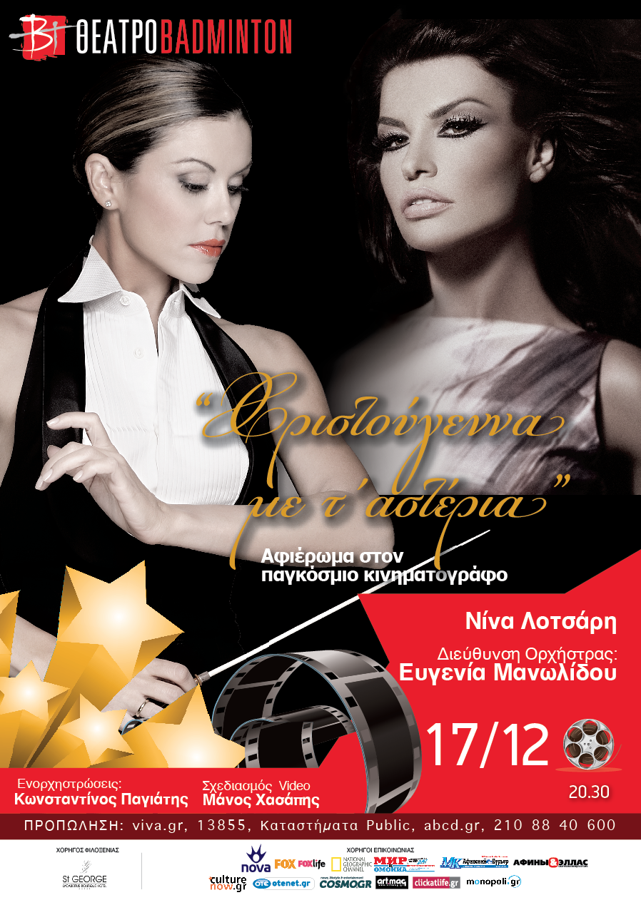 Η συναυλία θα είναι αφιερωμένη στον παγκόσμιο κινηματογράφο με τίτλο “Χριστούγεννα με τ’ αστέρια”.