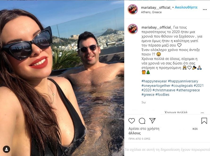 “Για τους περισσότερους το 2020 ήταν μια χρονιά που θέλουν να ξεχάσουν , για εμένα όμως ήταν η καλύτερη γιατί την πέρασα μαζί σου Έναν ολόκληρο χρόνο ποιος άντεξε ποιον?? Χρόνια πολλά σε όλους, εύχομαι η νέα χρονιά να σας δώσει ότι σας στέρησε η προηγούμενη” έγραψε η Μαρία Μπέη. Υπενθυμίζεται, ωστόσο, ότι το MasterChef έκανε πρεμιέρα στις 27 Ιανουαρίου του 2020, άρα οι δύο πρώην παίκτες του reality μαγειρικής ήταν μαζί ήδη από τα γυρίσματα.