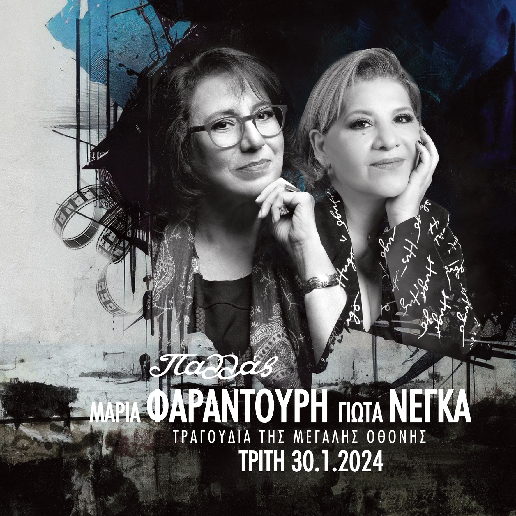 Ασπρόμαυρα και έγχρωμα όνειρα συναντιούνται στη σκηνή του Παλλάς για να τραγουδήσουμε παρέα ενώνοντας τις φωνές μας για ένα βράδυ με αυτές της Μαρίας Φαραντούρη και της Γιώτας Νέγκα.