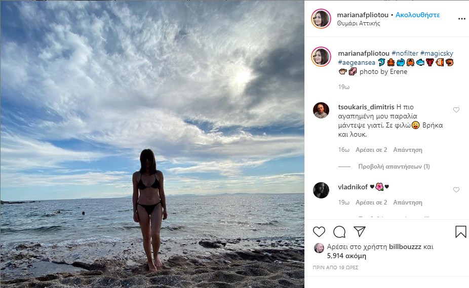 Η Μαρία Ναυπλιώτου εντυπωσίασε τους θαυμαστές της με την καλοκαιρινή φωτογραφία που δημοσίευσε στο προσωπικό της προφίλ στο instagram. Η γνωστή ηθοποιός πόζαρε με το μπικίνι της, βγαίνοντας από τη θάλασσα και δέχθηκε δεκάδες κοπλιμέντα από τους διαδικτυακούς της φίλους. “Χωρίς φίλτρο” έγραψε στη λεζάντα.