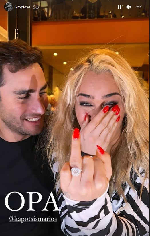 Μια όμορφη ημέρα του Φεβρουαρίου, λίγο μετά τη γιορτή των ερωτευμένων, επέλεξε ο ολυμπιονίκης Μάριος Καπότσης για να προσφέρει στην αγαπημένη του, Κόνι Μεταξά, ένα εντυπωσιακό μονόπετρο ζητώντας της να τον παντρευτεί. Κι εκείνη είπε το πολυπόθητο «ναι». Έπειτα από τρία χρόνια σχέσης, ο διεθνής πολίστας και η εκρηκτική περφόρμερ είναι απολύτως σίγουροι για την επιθυμία τους να χαράξουν κοινή πορεία ζωής. Περίμεναν απλώς την κατάλληλη στιγμή για να γίνει η πρόταση και όταν αυτή έγινε μοιράστηκαν την ευτυχία τους με τους διαδικτυακούς φίλους τους.