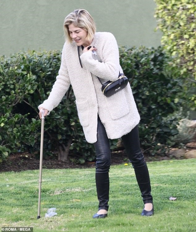Την Τρίτη ο φωτογραφικός φακός τη συνέλαβε για πρώτη φορά στον δρόμο της Σάντα Μόνικα μετά την εξομολόγησή της ότι πάσχει από σκλήρυνση κατά πλάκας, να κρατά μπαστούνι και να χαμογελά στην κάμερα.