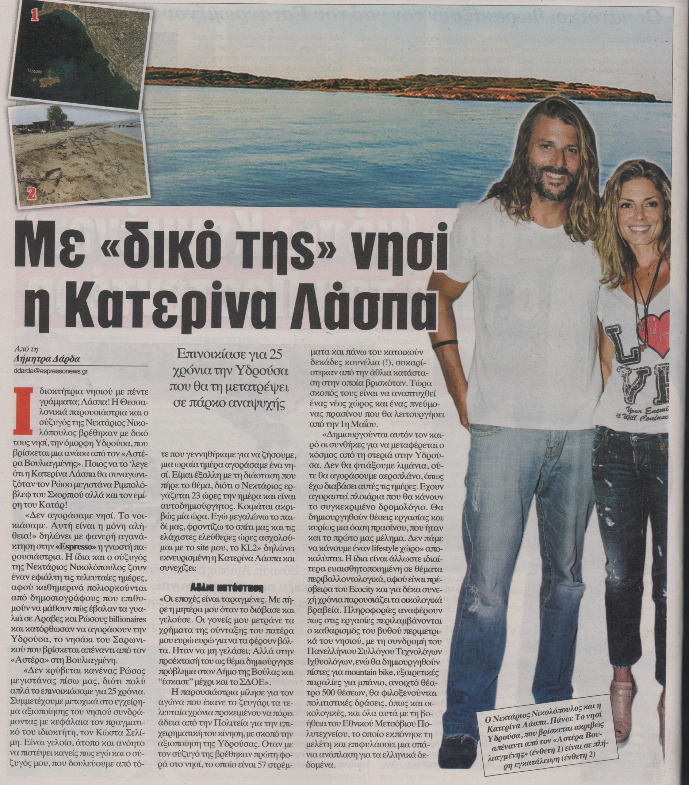 “Δεν αγοράσαμε νησί. Το νοικιάσαμε. Αυτή είναι η μόνη αλήθεια” δηλώνει η Κατερίνα Λάσπα στην εφημερίδα Espresso.