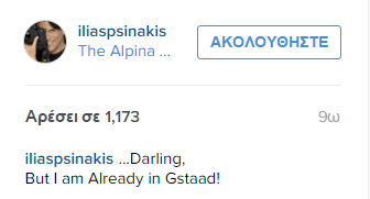Ο Ηλίας Ψινάκης συνεχίζει τις χριστουγεννιάτικες διακοπές του στο Γκστάαντ της Ελβετίας και όπως φαίνεται στη φωτογραφία το απολαμβάνει. Ο δήμαρχος του Μαραθώνα είναι ιδιαίτερα χαμογελαστός ενώ ξεχωρίζουν τα εντυπωσιακά λεοπάρ παπούτσια του και χρυσαφί φουλάρι του.