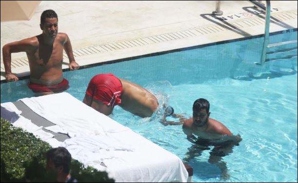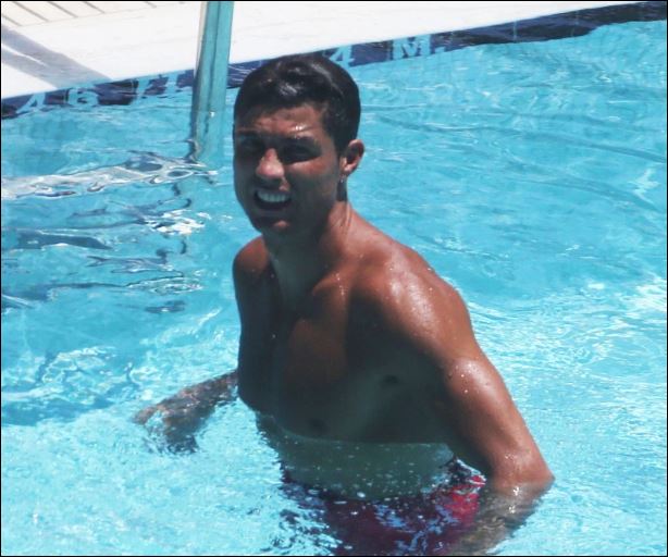 Ο φωτογραφικός φακός συνέλαβε τον Πορτογάλο ποδοσφαιριστή να κάνει μπάνιο σε πισίνα. Τα φλας μάλιστα πήραν «φωτιά» όταν εντόπισαν τη μυστηριώδη μελαχρινή που βρισκόταν μαζί του.