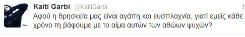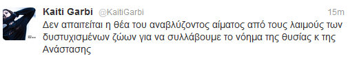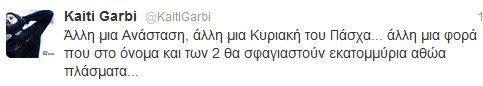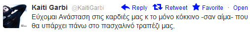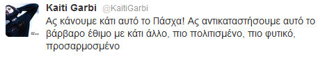 Η τραγουδίστρια αναρωτιέται ποιό είναι το πραγματικό νόημα της Ανάστασης και γιατί κάθε χρόνο πρέπει το πασχαλινό τραπέζι να βάφεται με αίμα…Διαβάστε τα tweets που ανέβασε πριν από λίγα λεπτά…