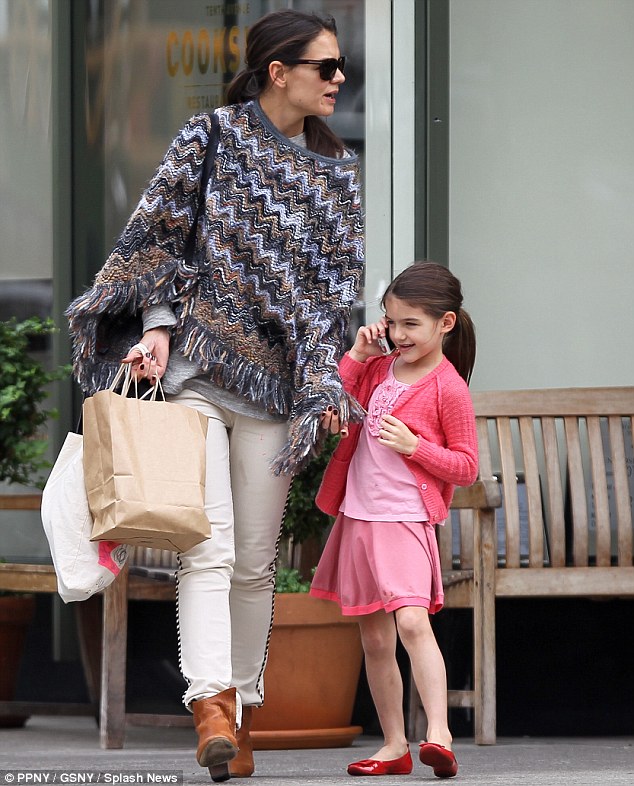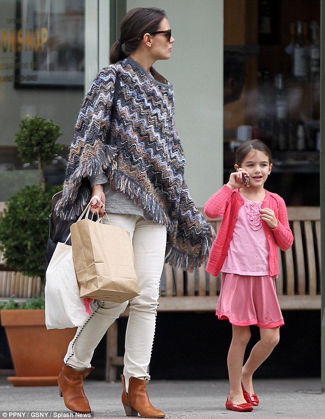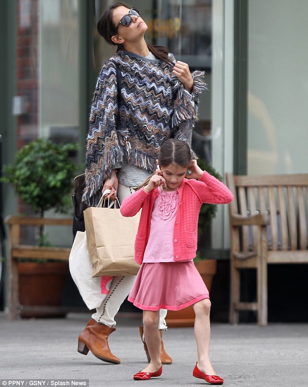 Η Suri βγήκε για ψώνια με την μαμά και ο φακός …συνέλαβε τη μικρή να μιλάει στο ροζ, λουλουδάτο κινητό της.