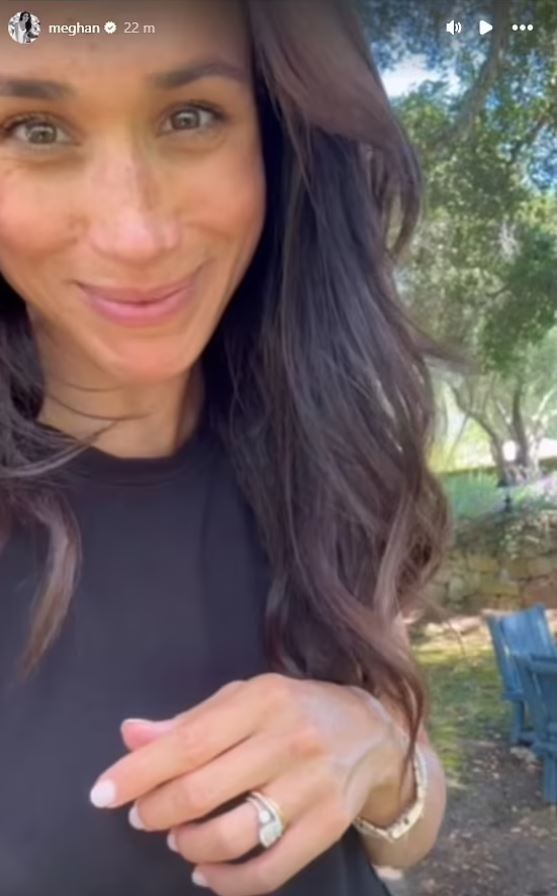 Η Μέγκαν διατήρησε το πρόσωπό της σε μεγάλο βαθμό χωρίς μακιγιάζ, με τη μητέρα δύο παιδιών να φαίνεται να φοράει απαλό ροζ κραγιόν και ασορτί ρουζ. Το βίντεο περιελάμβανε μια πιο προσεκτική ματιά στις βέρες της Μέγκαν Μαρκλ, αφού οι θαυμαστές παρατήρησαν τον ασυνήθιστο τρόπο με τον οποίο επέλεξε να τις φορέσει.