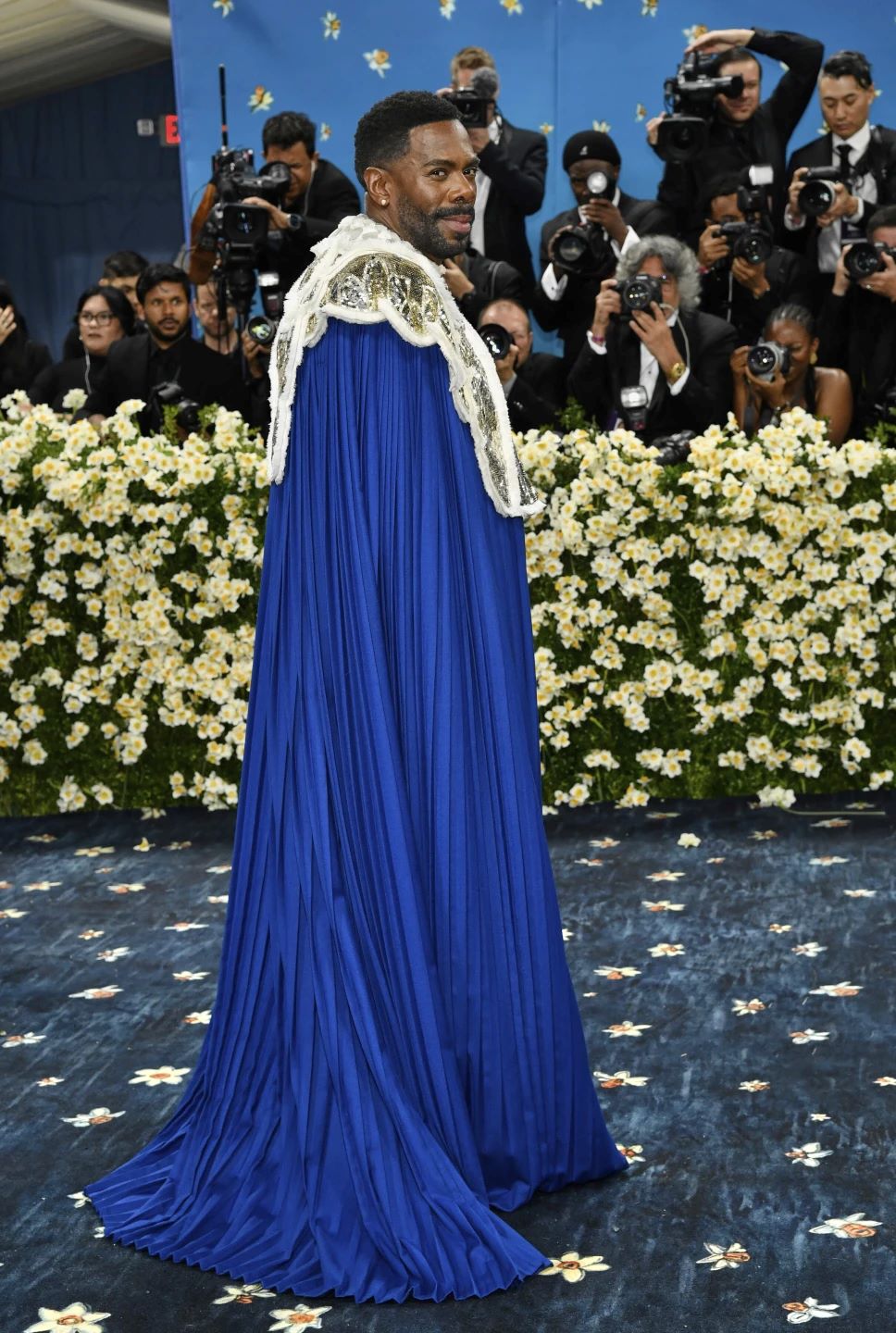 Ο Colman Domingo, συμπαρουσιαστής της βραδιάς, έκανε είσοδο με μια μπλε κάπα Valentino ως φόρο τιμής στον André Leon Talley, πρώην δημοσιογράφο της Vogue.