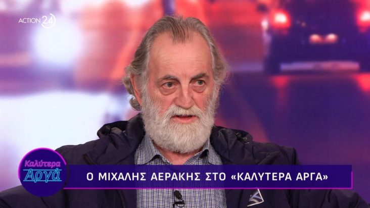 Αναφερόμενος στην προσωπική του ζωή, ο Μιχάλης Αεράκης μίλησε με συγκίνηση για τη σύζυγό του και τον γάμο τους, που μετρά ήδη τέσσερις δεκαετίες και κάτι. «Είμαστε με τη σύζυγό μου 45 χρόνια. Η κόλλα που μας κράτησε μαζί ήταν ο αλληλοσεβασμός και η αλληλοκατανόηση. Ξέρει πολύ καλά τι δουλειά κάνω κι εγώ ξέρω τι γυναίκα έχω», είπε. Θυμήθηκε μάλιστα τη στιγμή που αποφάσισε να νοικοκυρευτεί: «Της είπα “θέλω να κάνω οικογένεια μαζί σου”, γιατί μέχρι τότε ήμουν σε μια ασωτία. Κάποια στιγμή είπα “κάτσε καλά” και τότε γνώρισα τη γυναίκα μου, το 1980, στο χωριό μου, σε κάποιες εκδηλώσεις για τον Χατζιδάκι».